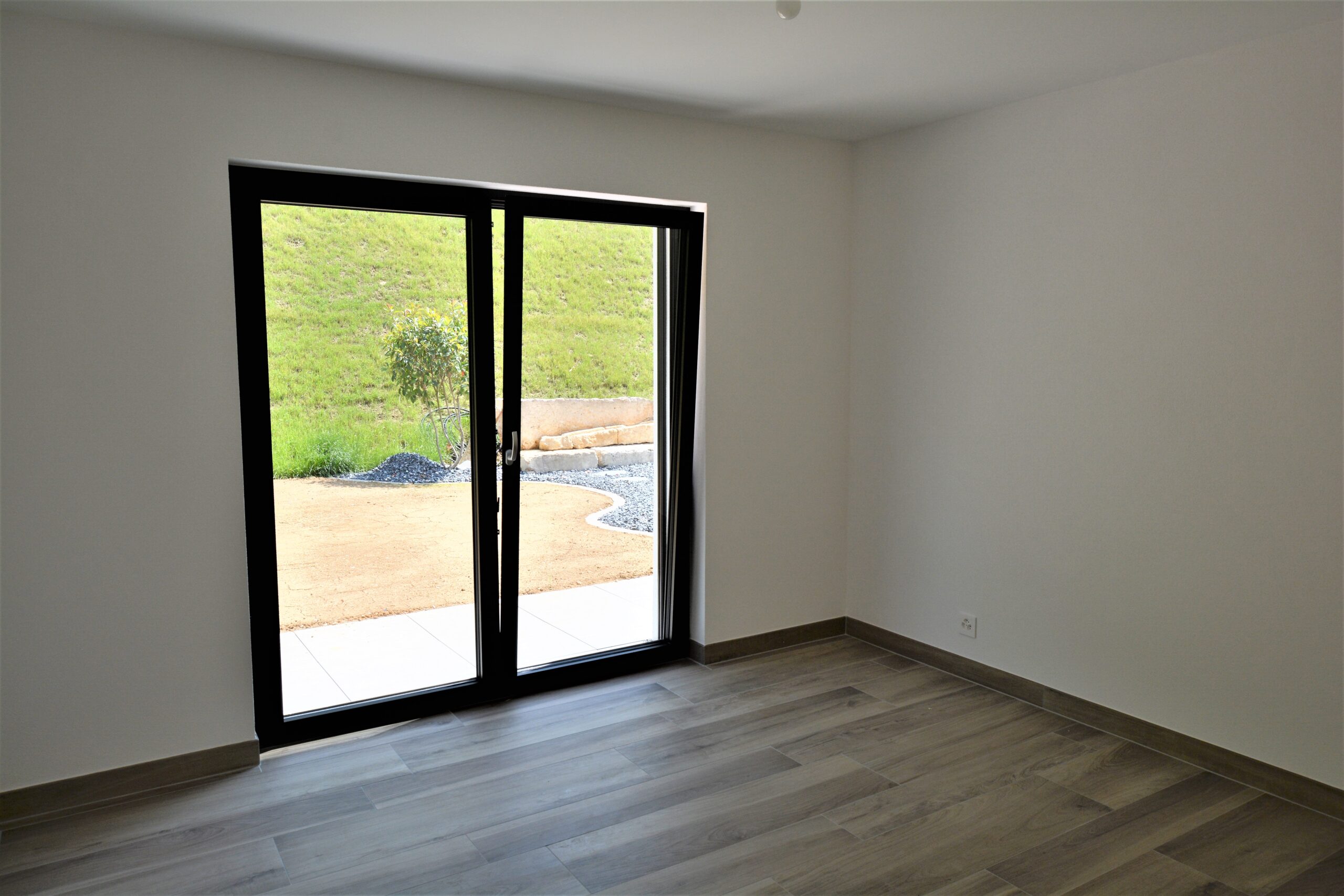 Les stores des baies vitrées sont électriques.
