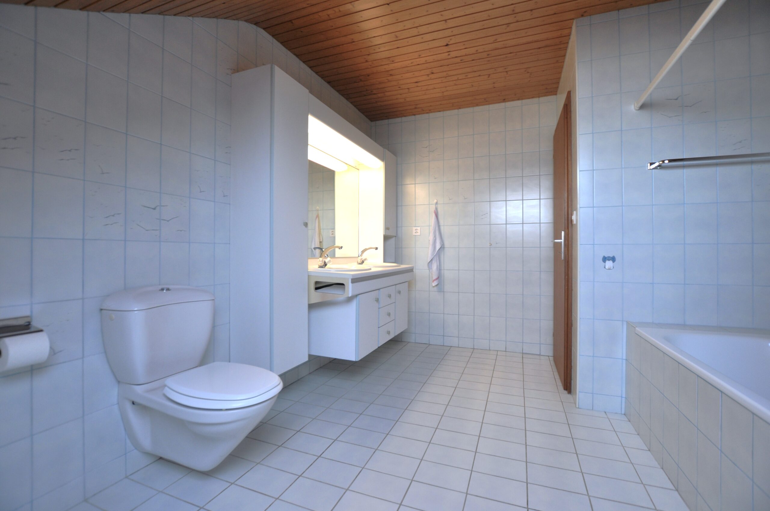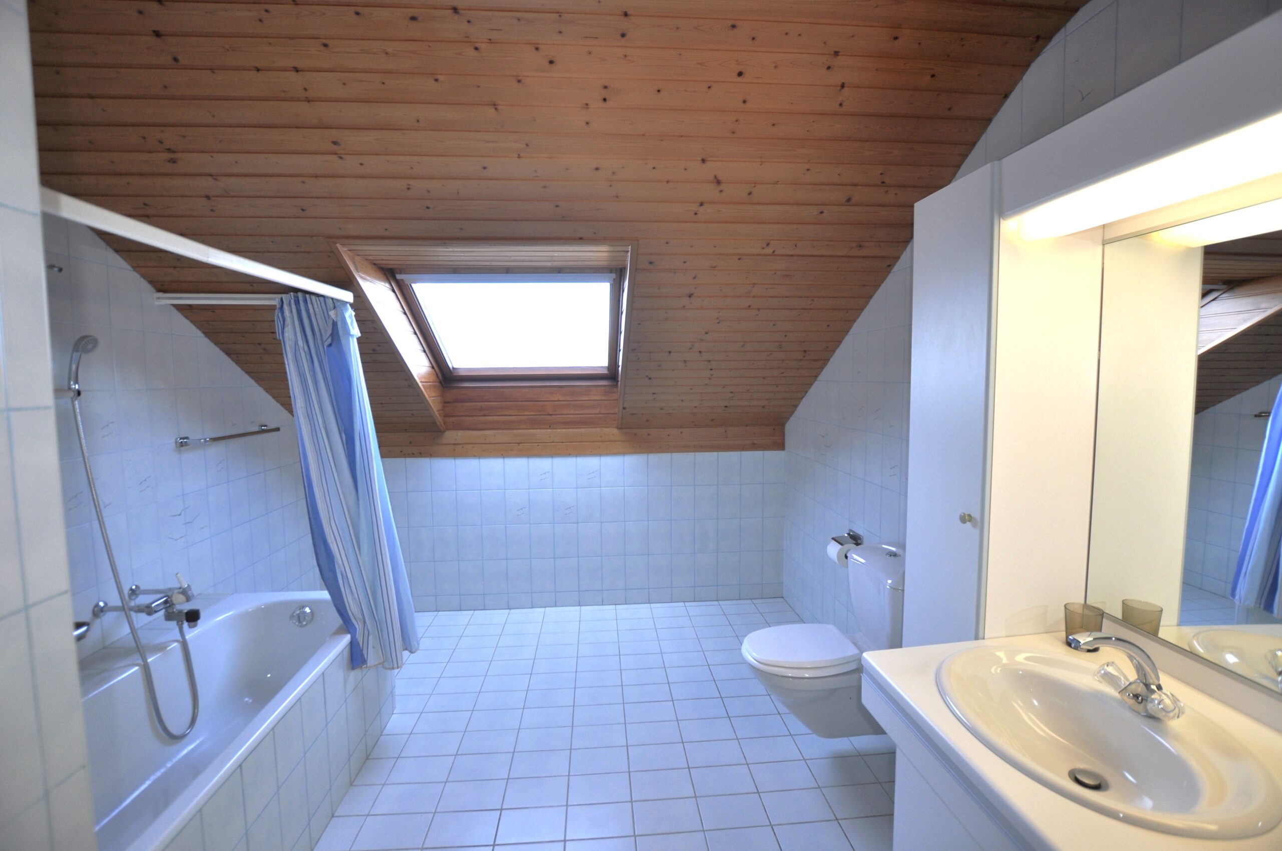Le 1er étage est composé d’un hall de distribution, de trois chambres à coucher, d’une salle de bains avec baignoire, meuble double vasque et WC ainsi que de deux petits greniers pouvant faire office de dressing.